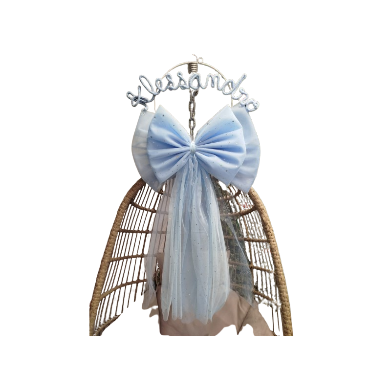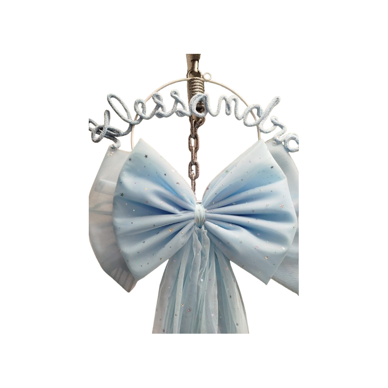 Fiocco Nascita Grande In tulle con Scritta in Tricoton