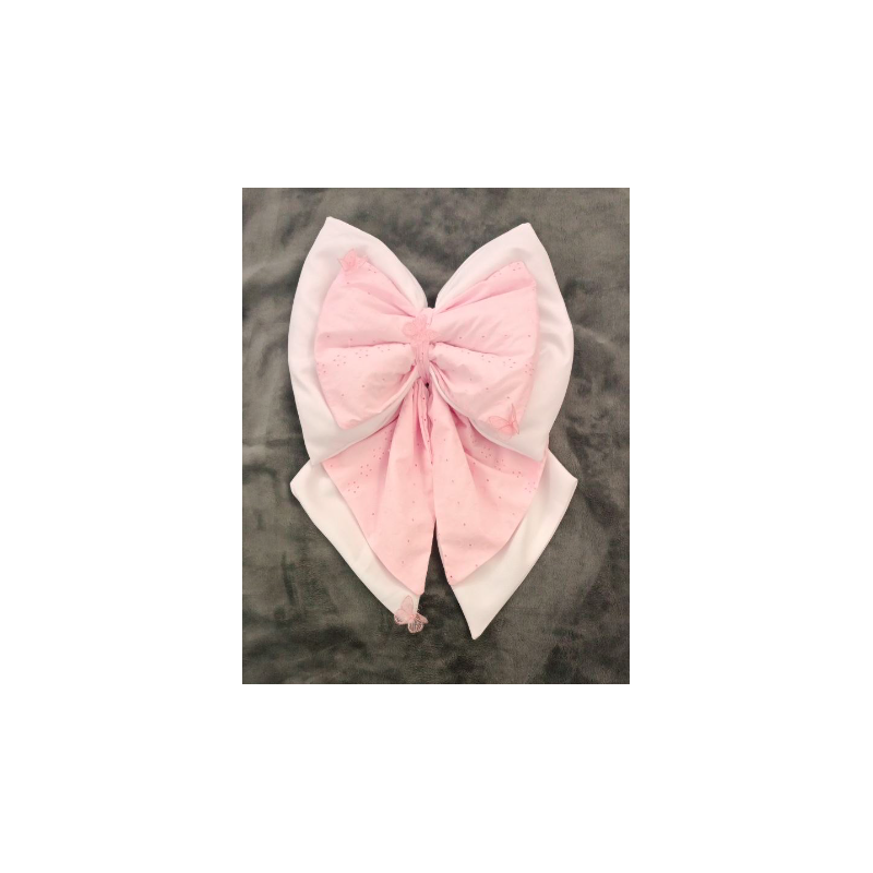 Rosa Sangallo Geburtsschleife mit personalisierter Stickerei aus Baumwollstoff mit gepolsterten Herzapplikationen, auf denen Sie den gewünschten Namen eingravieren lassen können.