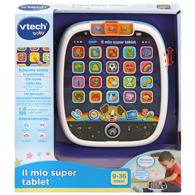 My Super Tablet ist der erste lehrreiche Zugang für die Kleinen zur Welt der Tablets. Dank 25 interaktiven Symbolen können Kinder im Alter von 9 bis 36 Monaten Zahlen, Farben, Buchstaben und Tiere erkunden und so ihren Wortschatz erweitern.
